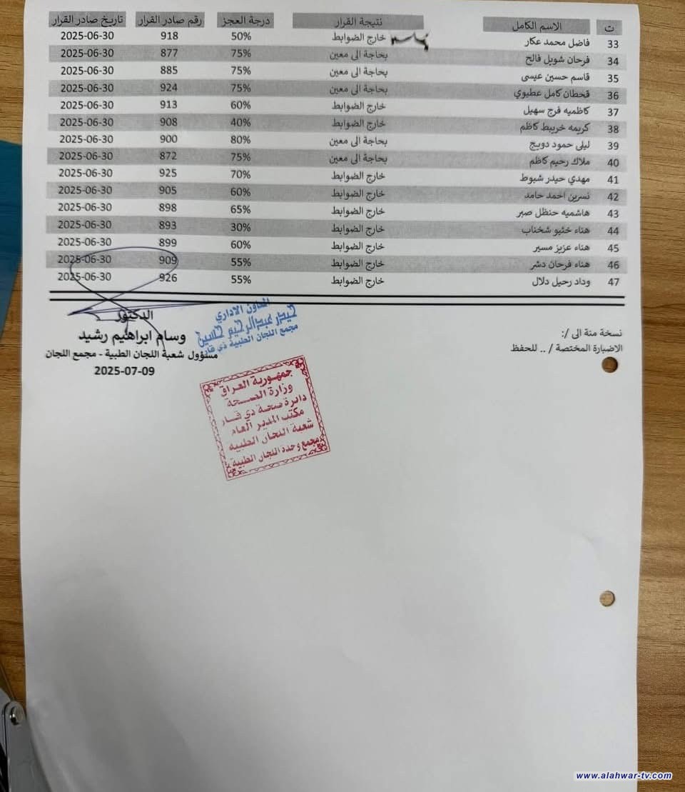 القرارات الصادرة من مجمع اللجان الطبية في ذي قار
