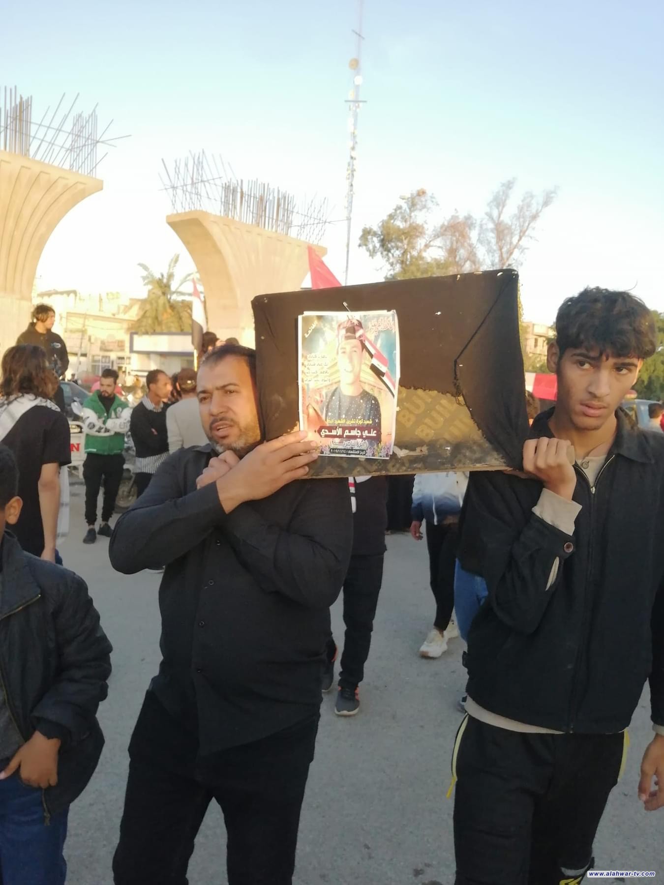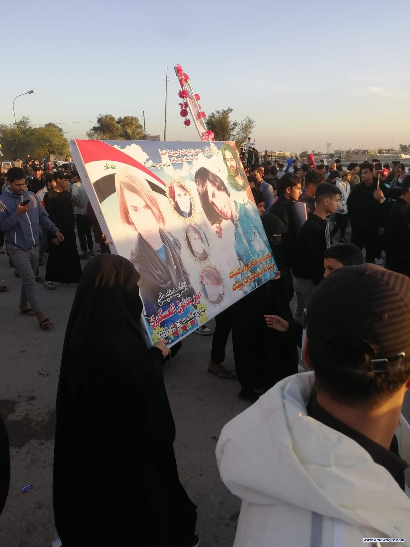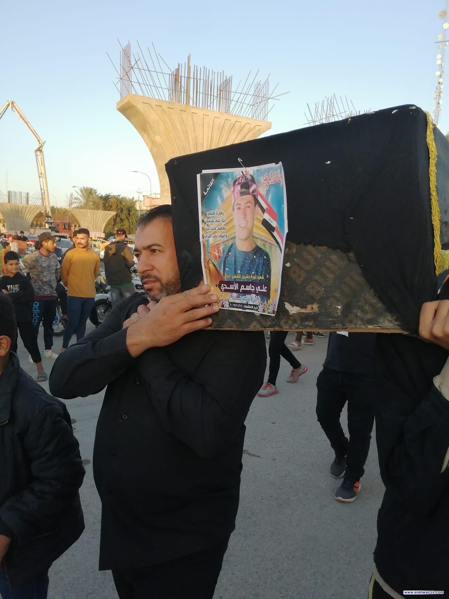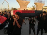 بالمسيرات التابينية أحيا مدينة الناصرية شهداء للتظاهرات الاحتجاجية التي سقط خلالها عشرات الشهداء علئ جسر الزيتون