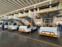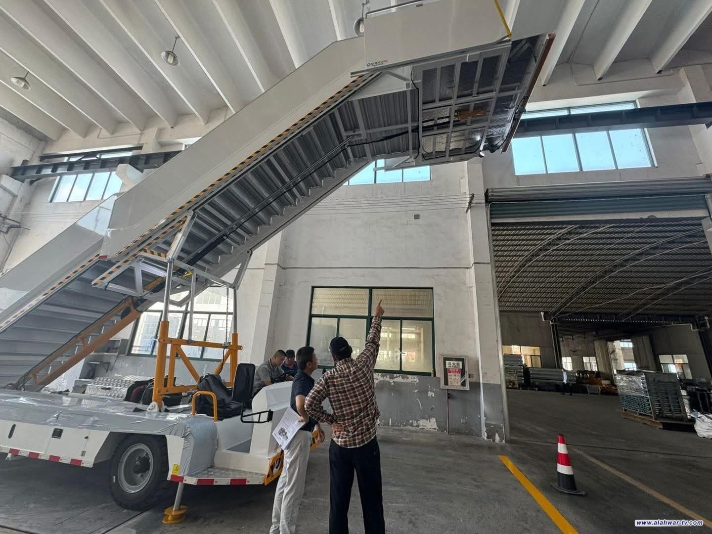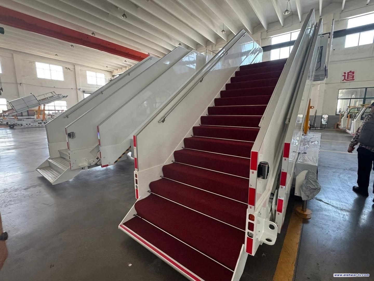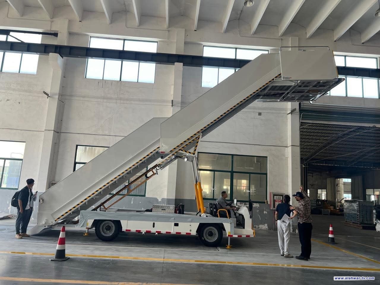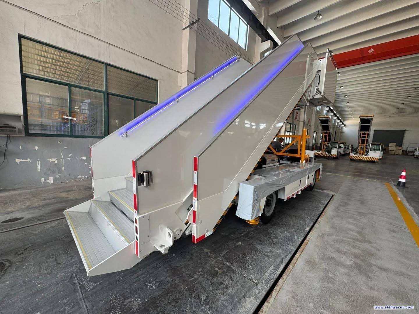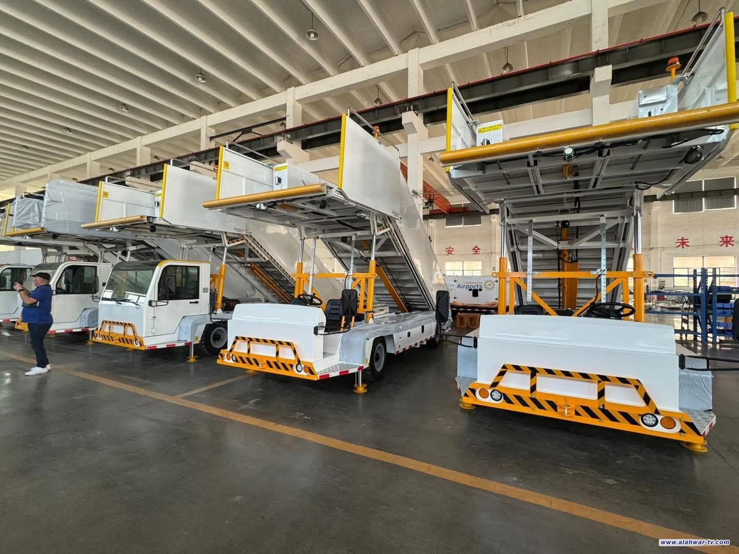 سلالم ركاب بينها واحدة VIP مكيّفة، جسور تحميل، وسيور نقل أمتعة عربات إطفاء متكاملة وبرج إنارة متنقل بارتفاع 12 متراً للعمليات الليلية .