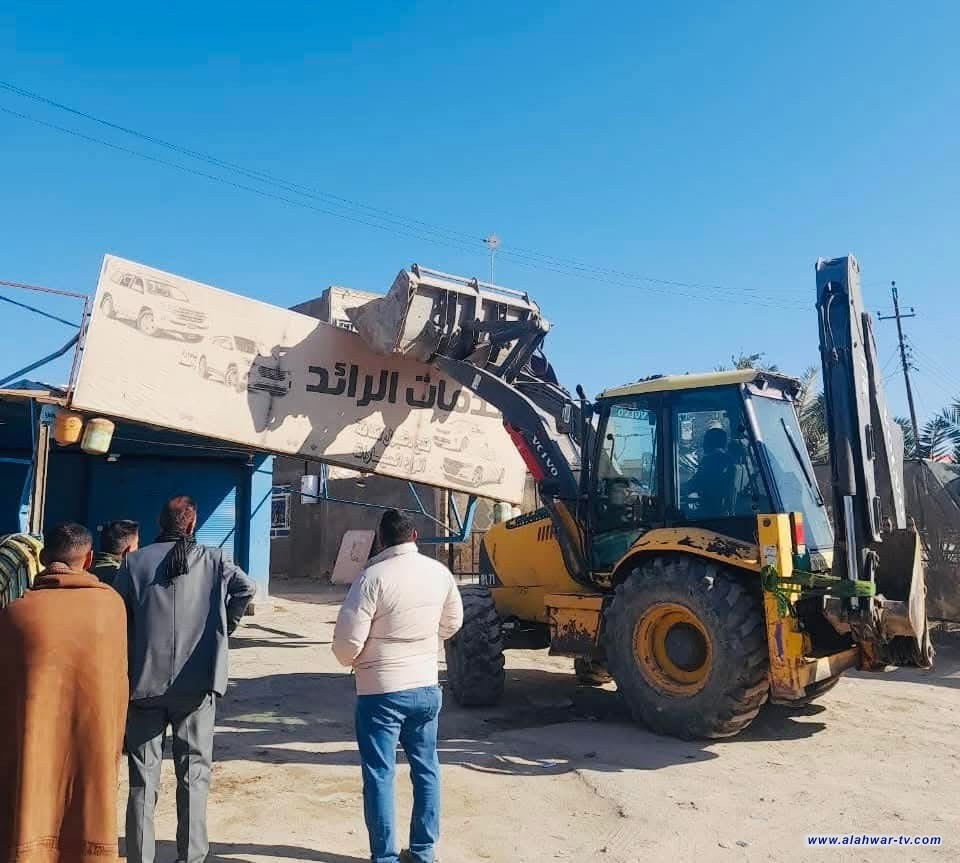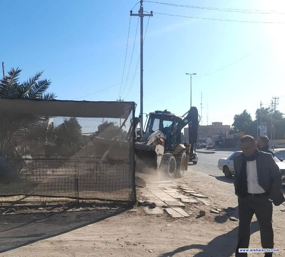 بالصور: إزالة التجاوزات المعرقلة لإنشاء مشروع مجسر المنصورية في الناصرية وطريق يا حسين في مرحلته الثانية