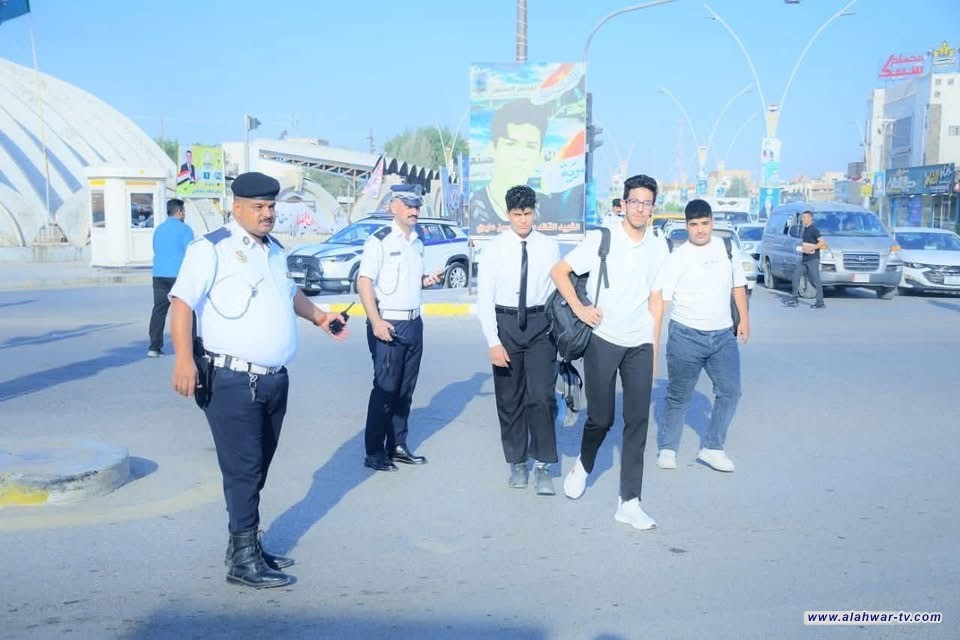بالصور: مرور ذي قار ينظم الحركة ويؤمن سلامة الطلاب قرب المدارس