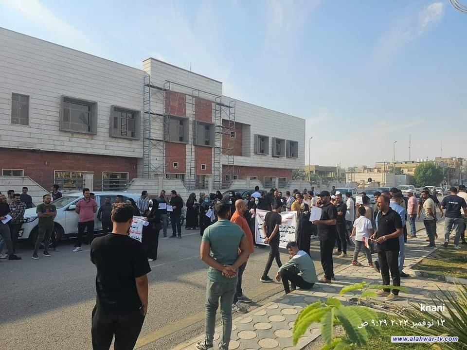 عشرات الأطباء البيطريين يعتصمون أمام المستشفى البيطري في ذي قار