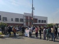 منتسبي دائرة صحة ذي قار يتظاهرون امام مبنى ديوان المحافظة للمطالبة بتوزيع قطع الأراضي السكنية