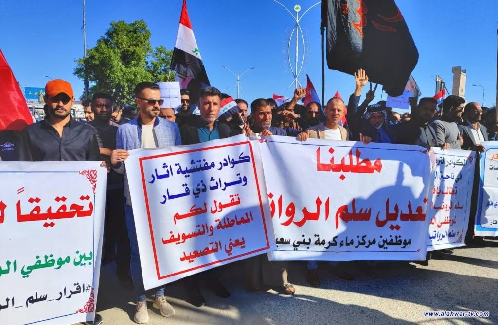 بالصور: موظفو الدوائر الحكومية في ذي قار يتظاهرون للمطالبة بتعديل سلم الرواتب