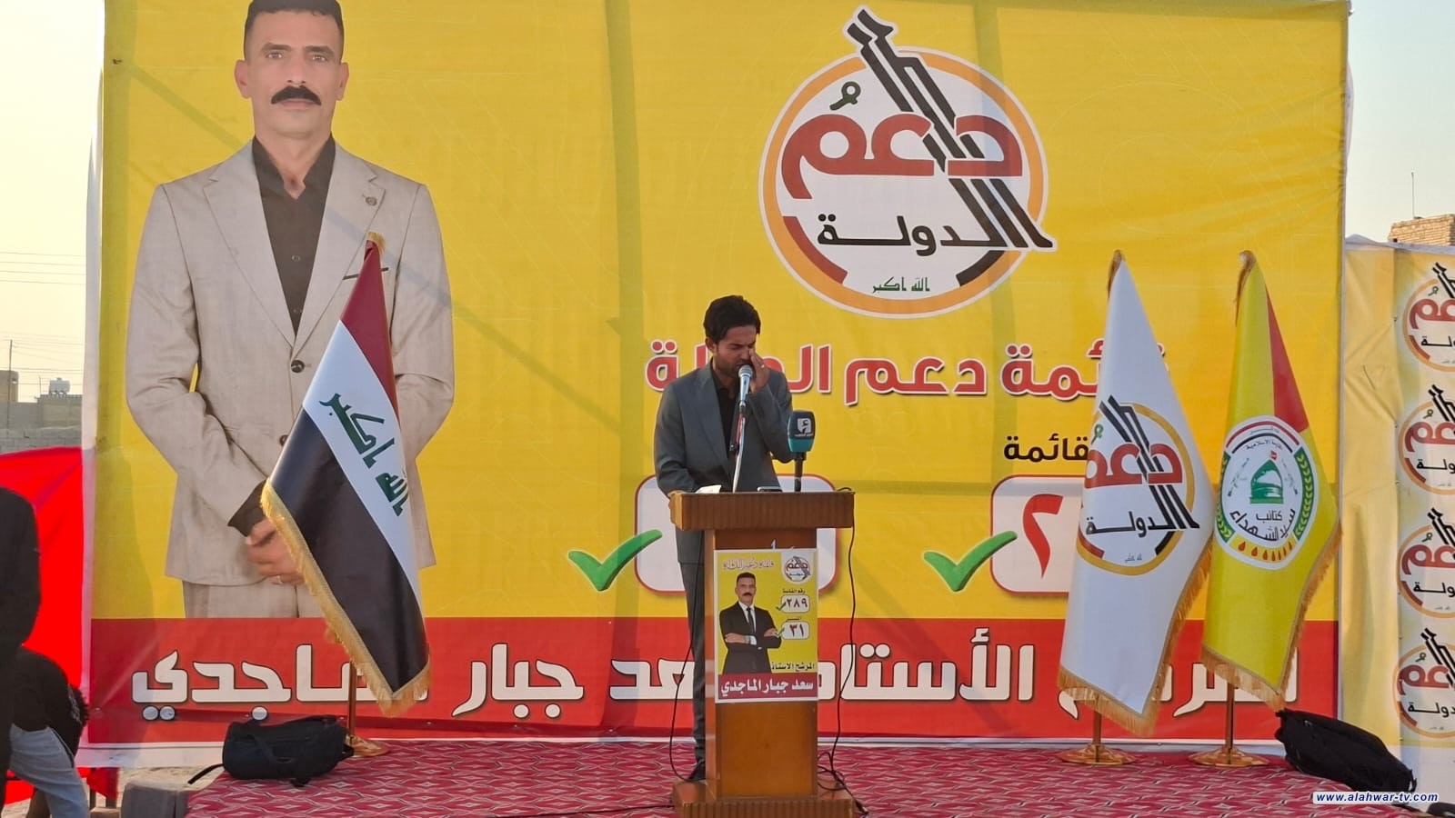 شهد قضاء الفهود في محافظة ذي قار حضوراً جماهيرياً واسعاً خلال التجمع الانتخابي الذي أُقيم دعماً لمرشح قائمة دعم الدولة رقم (289) أسعد الماجدي، وذلك بحضور سماحة الشيخ كاظم الفرطوسي، المتحدث باسم كتائب سيد الشهداء.
