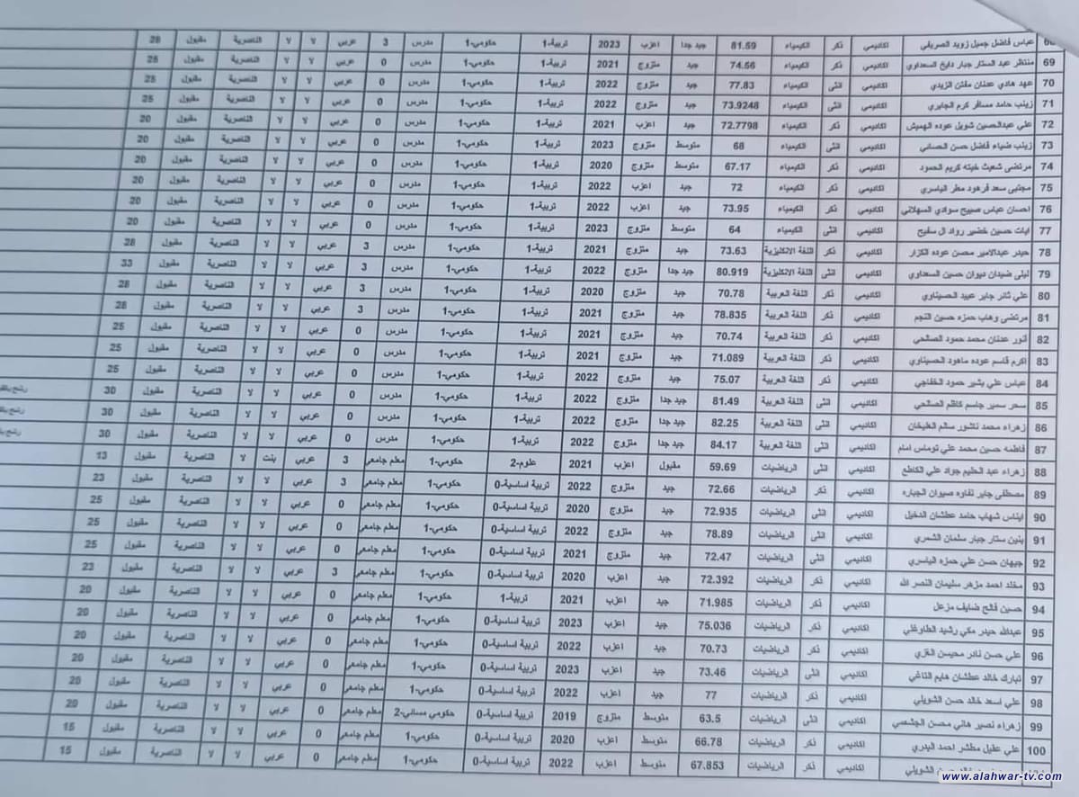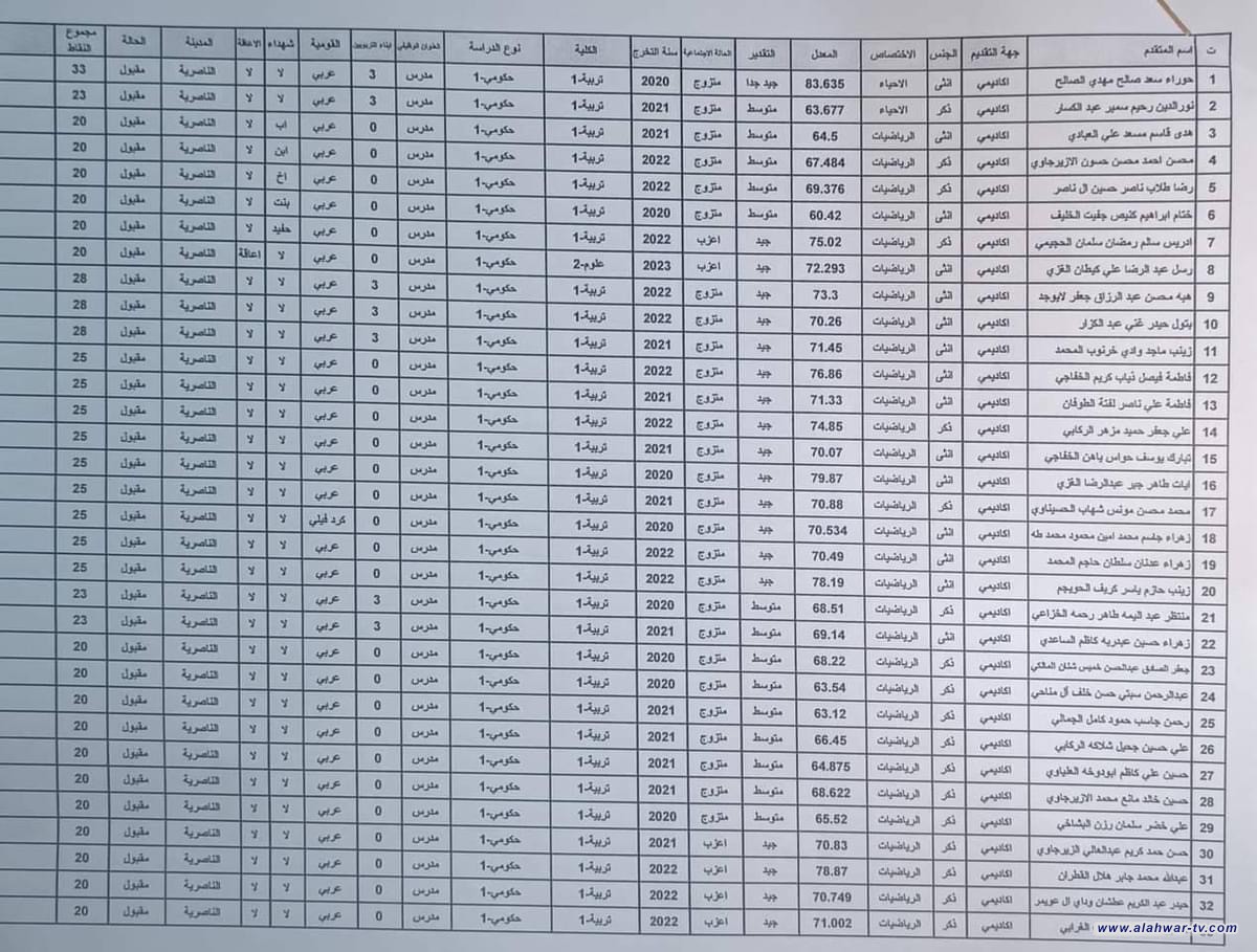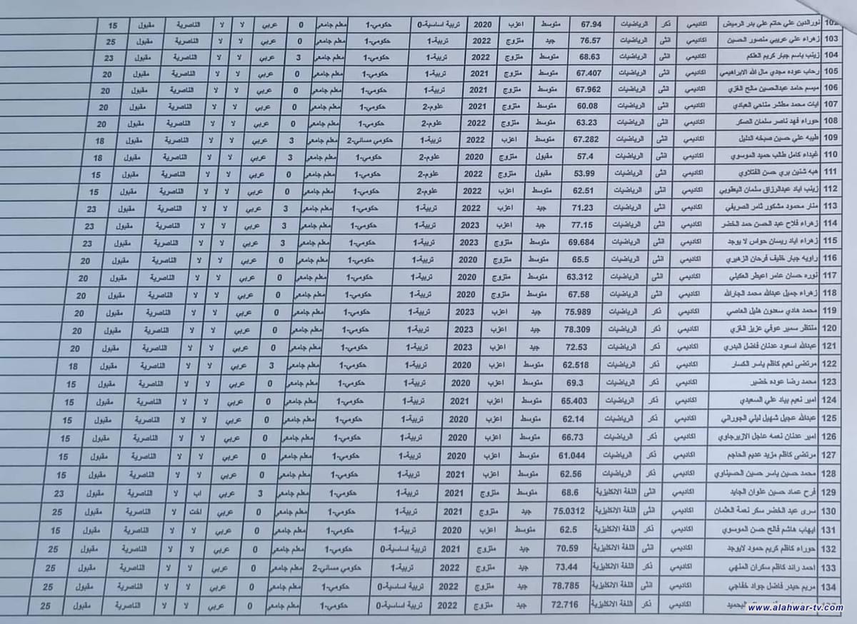 تربية ذي قار تدعو الذوات المدرجة اسماؤهم ادناه ، مراجعة قسـم تربيــة الناصرية / لغرض التعاقد معهم يوم الأحد المصادف/ 29//9//2024 من الساعه التاسعة صباحاً ولغاية الساعة الواحدة بعد الظهر دفـع رسم البالغ (6000) ستة الف دينار