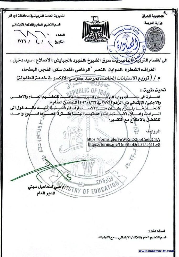 تربية ذي قار تطلق استبانات مرصد كرسي الألكسو لدعم برامج الطفولة