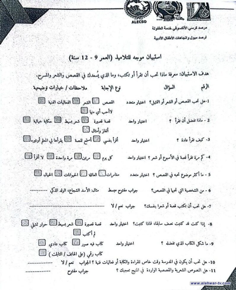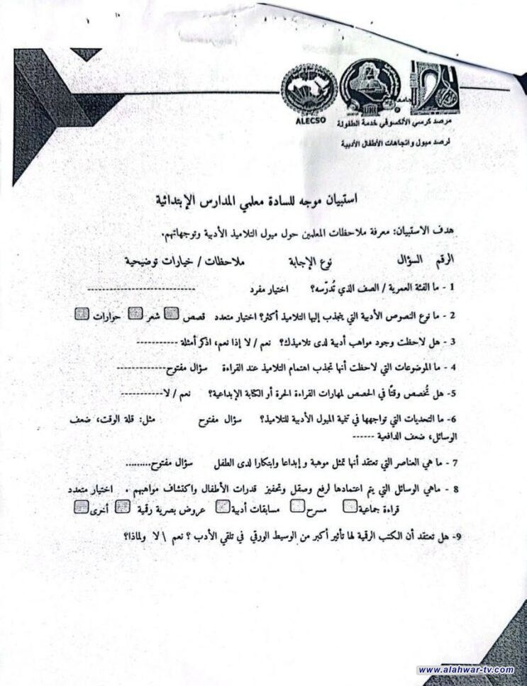 وتهدف هذه الاستبانات إلى جمع بيانات دقيقة تسهم في تشخيص واقع الطفولة التعليمية والاجتماعية، بما يساعد على وضع خطط وبرامج فاعلة تتماشى مع المعايير التي تعتمدها منظمة الألكسو.