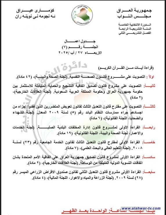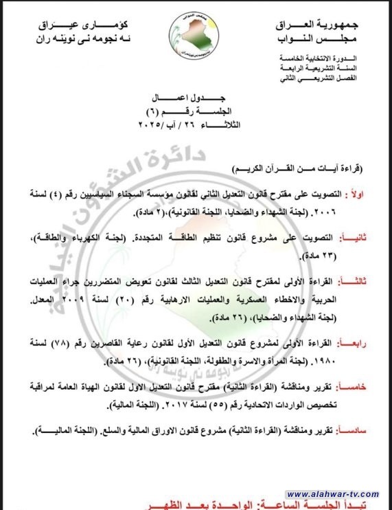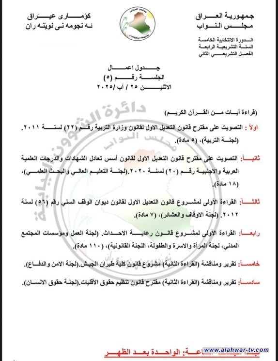 جداول أعمال البرلمان لجلسات الأسبوع المقبل الثلاث