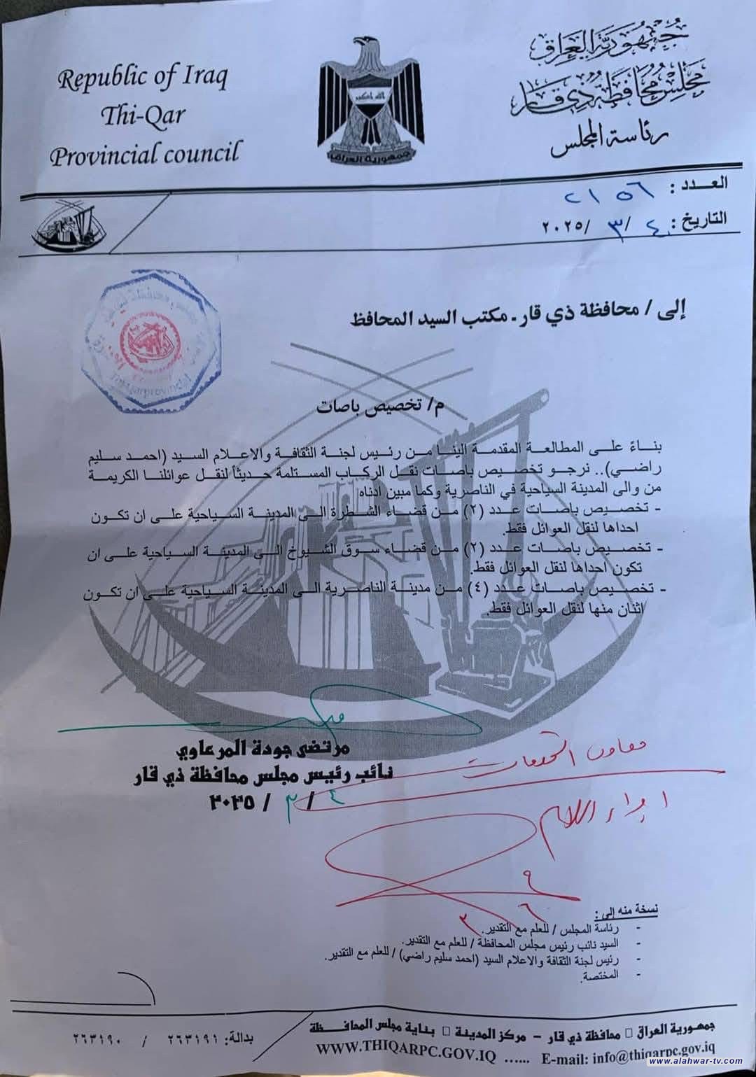 أعلن رئيس لجنة الثقافة والإعلام في مجلس محافظة ذي قار، أحمد سليم، عن تخصيص أربع باصات مجانية لنقل العوائل إلى مدينة أور السياحية، بهدف تعزيز السياحة الثقافية وإبراز الأهمية التاريخية للمدينة.