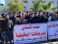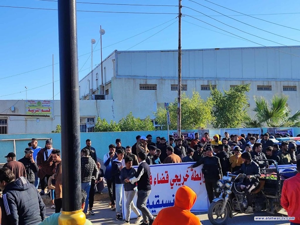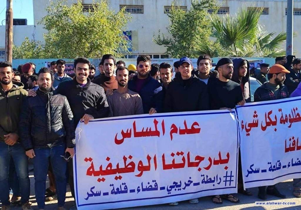 متظاهرين من الخريجين يغلقون تربية قلعة سكر للمطالبة بشمولهم بقرار الاستثناء